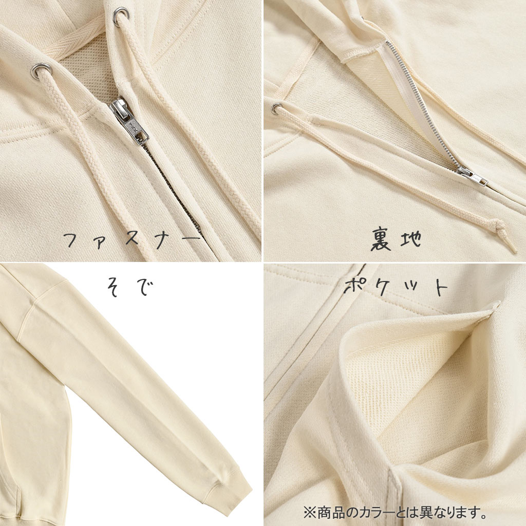 軽すぎず重すぎない8.8オンスの絶妙な厚みで仕上げた、フレンチテリー(裏パイル)素材のジップアップパーカー。