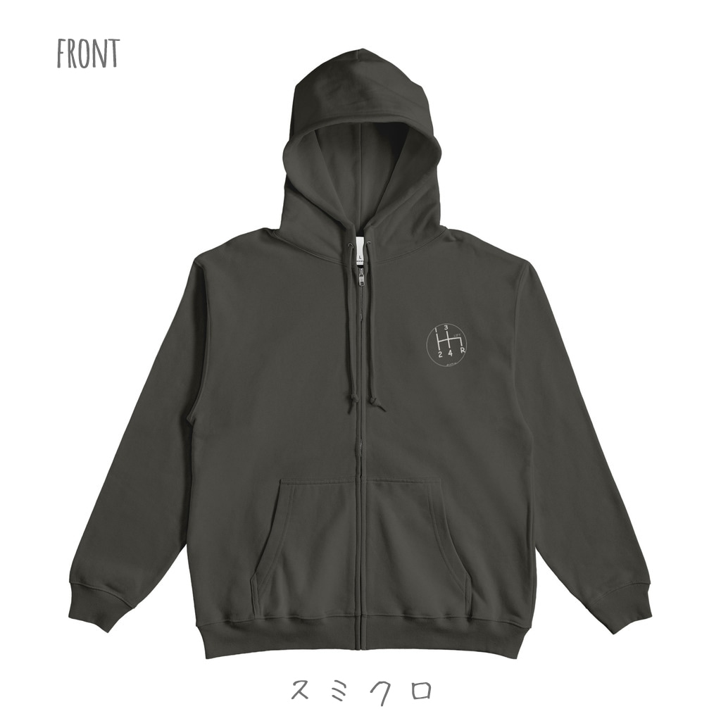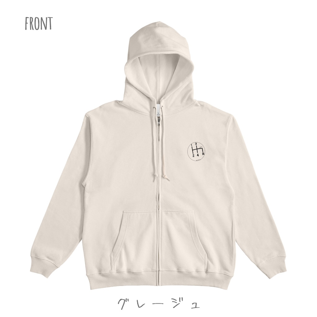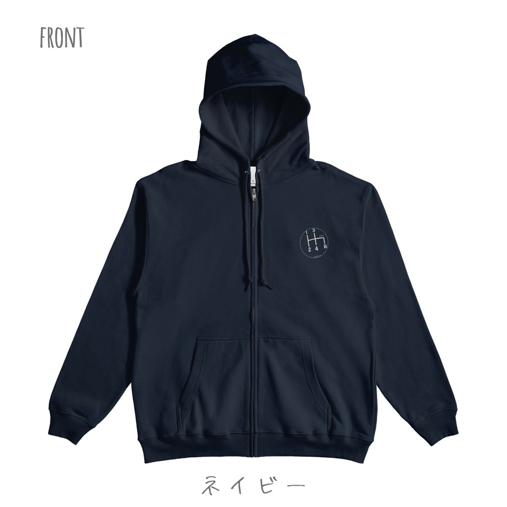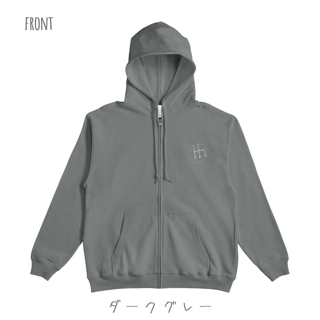 フロントジップタイプのシフトパターンパーカーです。